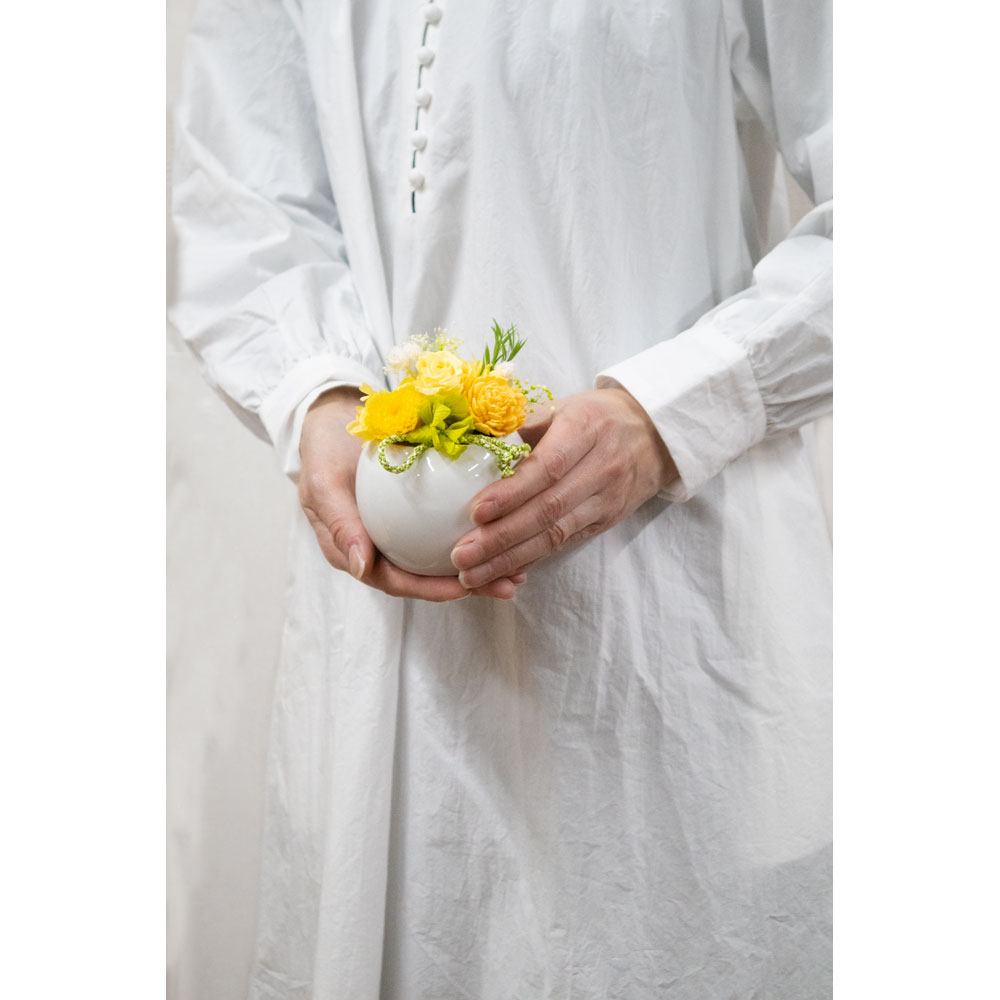 <プリザーブドフラワーとは>プリザーブド(preserved)とは保存の意味、生花の水分を抜き取り特殊な保存液に置き換える特殊加工で、咲いた状態のお花を長時間保ったものです。見た目はみずみずしいのに枯れることのない花。水やりの必要はございません。高温多湿を避けてお楽しみください。