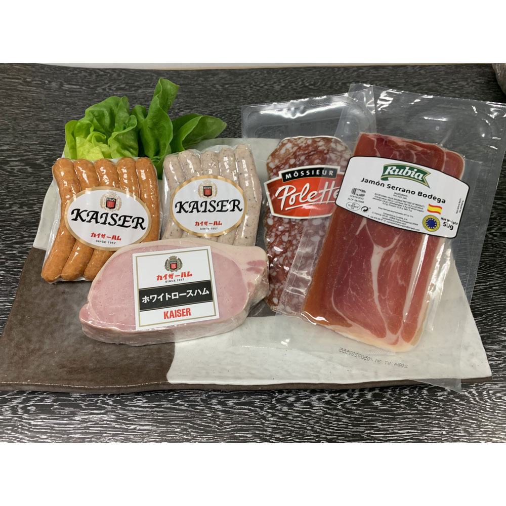 ホワイトロースハム、ハモンセラーノ、ソシソンセックサラミ、ハーブスパニッシュー、チョリソー 各1パック