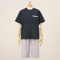 天竺無地のトップスにサッカー地のボトムスを合わせた夏の定番のくつろぎスタイルのご提案です。