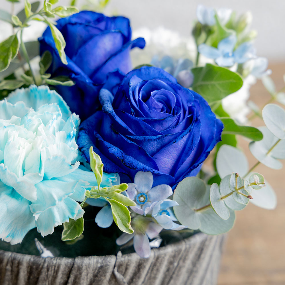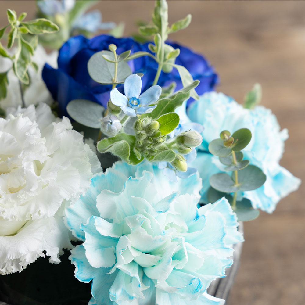 「希望」や「幸福」を象徴するブルーのお花を集めました。大切なお父さんに贈る、父の日の特別なギフトにおすすめです。すぐに飾っていただける、アレンジメントタイプです。