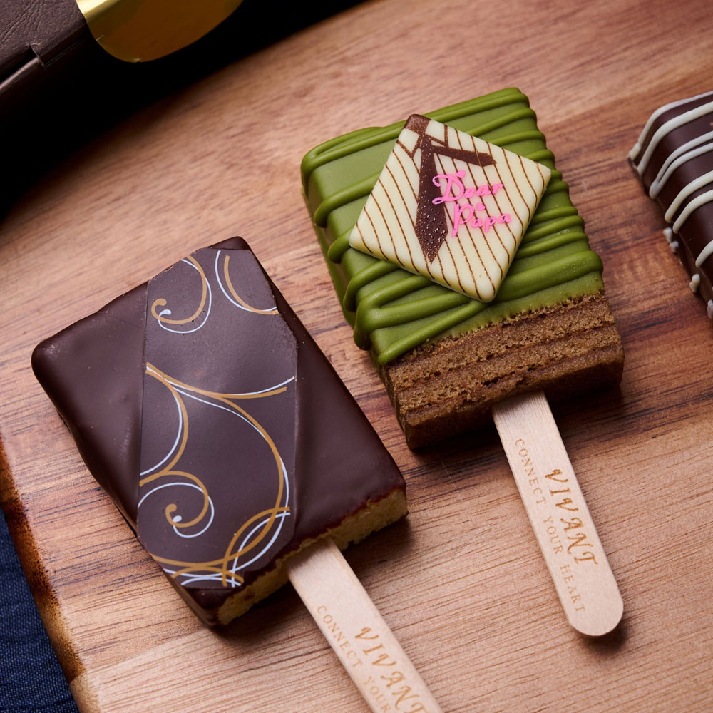 スタイリッシュなラグジュアリーシリーズから、父の日の贈りものにぴったりなデザインでお届けいたします。福井県産コシヒカリの米粉を使用した、職人が一層一層丁寧に焼き上げるしっとりもちもちのバウムクーヘンをチョコレートでコーティングし、可愛らしく仕上げました。