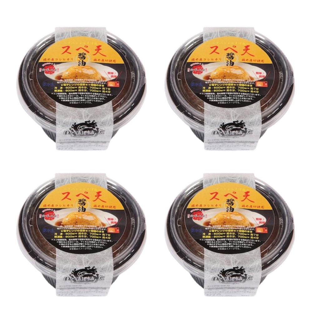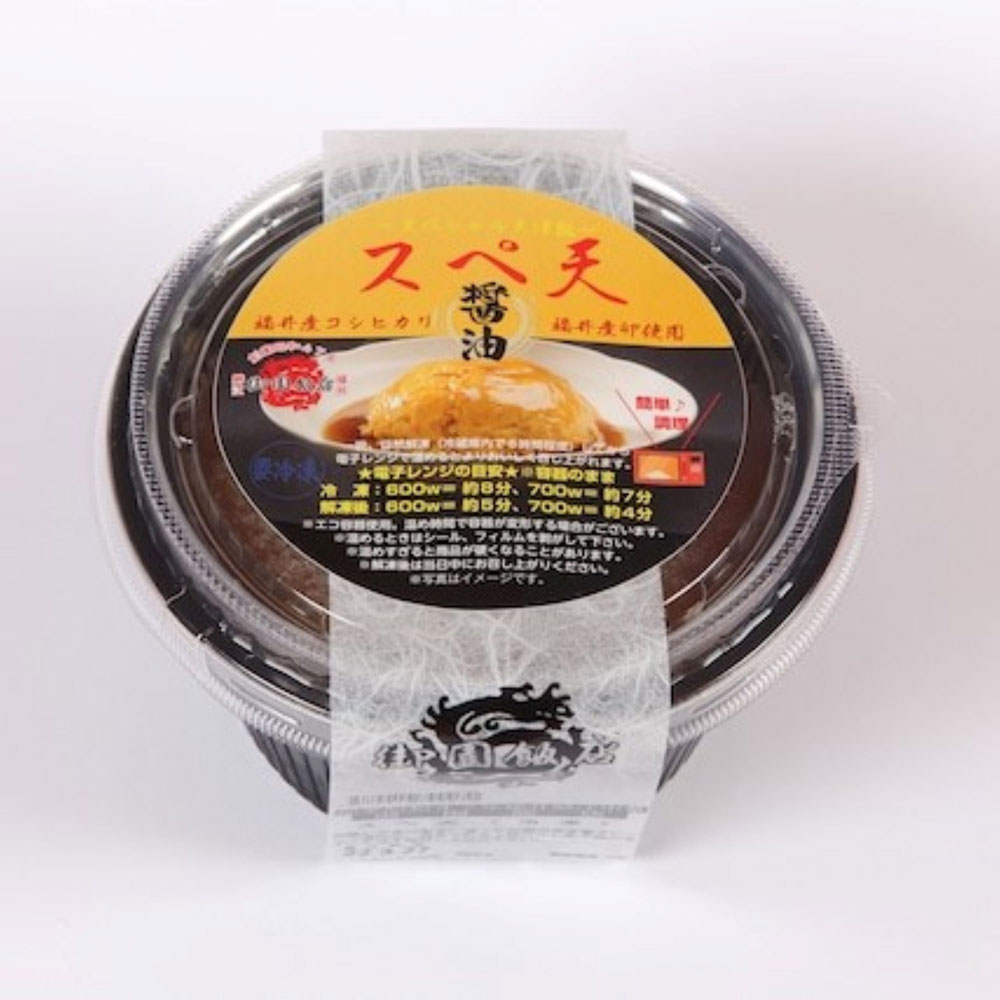お客様の声から生まれた丼ぶりセット。創業当時、それはそれは大変人気のふわパラ炒飯がありました。そして、これまた大変人気な他にはない独特なモッチリ食感のかに玉がありました。ある時一人のお客様が、「炒飯の上にかに玉のせて」と初代にお願いしたところ、食べたお客様、初代はもちろん、周りのスタッフから「こんなうめ~もん食べた事ないわ」と即メニュー化されました。名前は天津飯の下の白米が炒飯になったため、スペシャル天津飯。しかし、身内やスタッフ、お客様の間で略されて「スペ天」と呼ばれ馴染んでいった事から「スペ天」に改名。以来、常連さんはもちろん口コミで聴き食べにくるお客様のハートをつかんだ人気の逸品。お米は地元農家さんが作る福井県産米と、同じく福井県産の玉子をたっぷりと使ったふわパラ炒飯の上に、モッチリ食感のかに玉をのせ、とろ~り甘めのタレをかけました。福井県鯖江市のソウルフードといえる人気の味をお届けいたします。