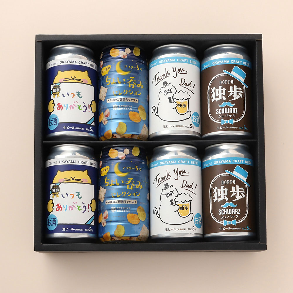 ビール好きのお父さんへぴったりの岡山の地ビール「独歩」とおつまみのセット