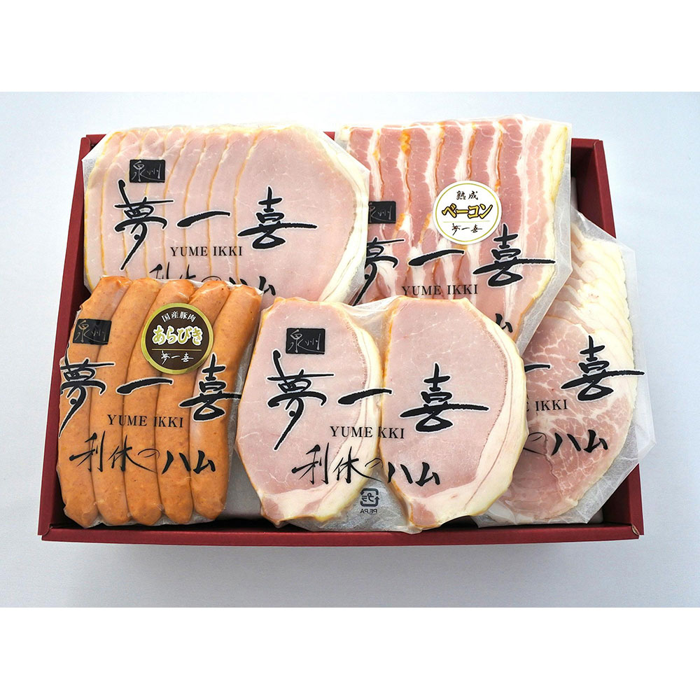 夢一喜こだわりのハムをはじめ、あらびきウインナーやボンレスハム・ベーコンなど人気商品を詰合せました。