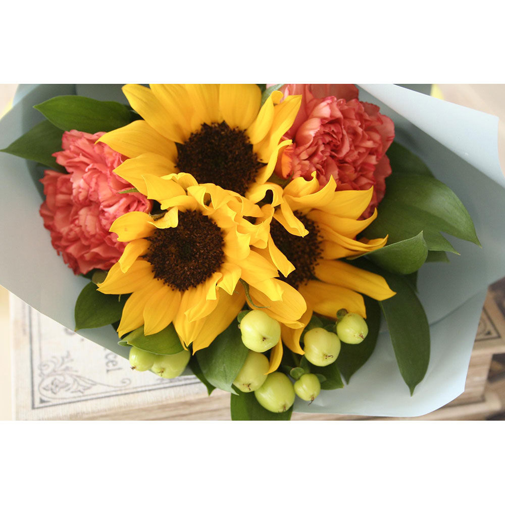 笑顔のような明るいヒマワリの花束でお父さんへの感謝を伝えましょう。