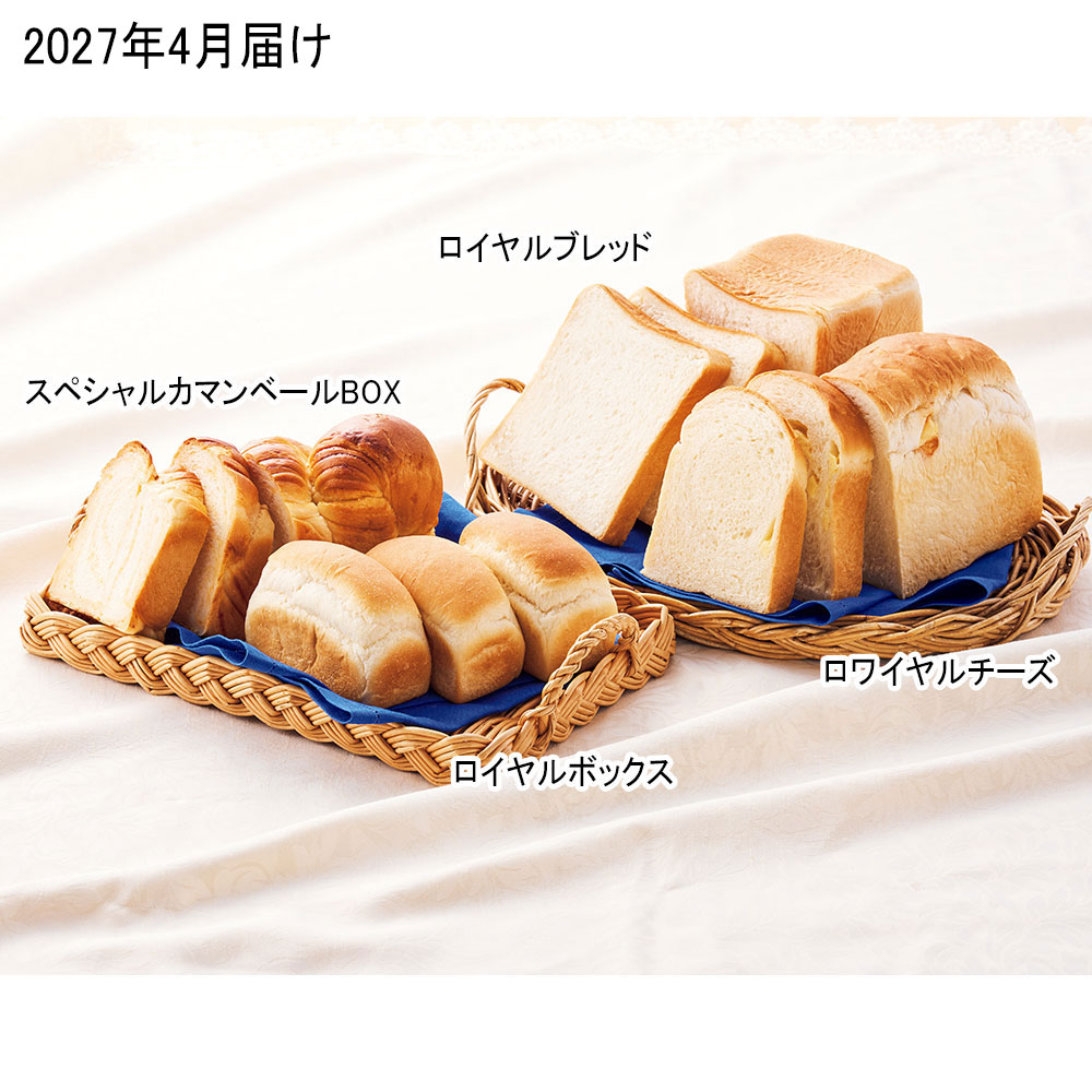 2027年4月:ロイヤルブレッド(630g×1個)、ロワイヤルチーズ(410g×1個)、スペシャルカマンベールBOX(360g×1個)、ロイヤルボックス(60g×3個)