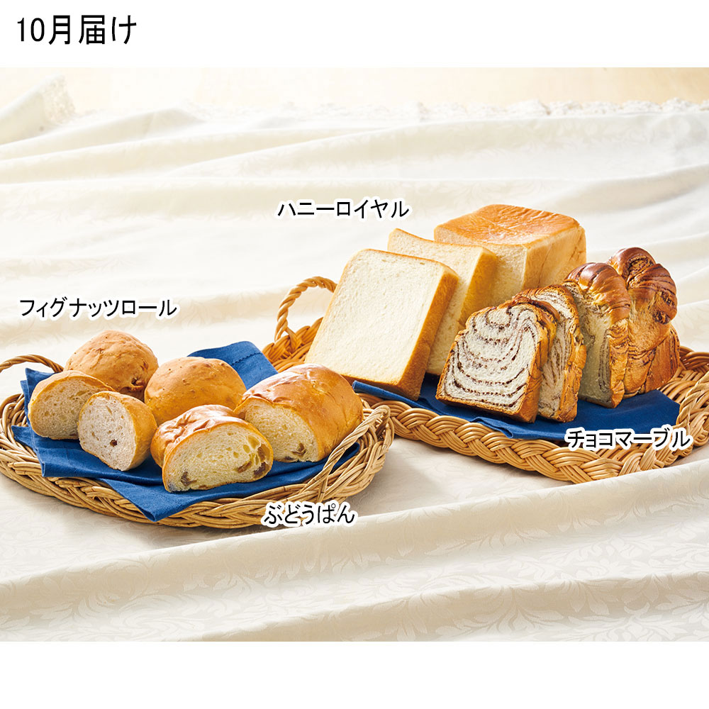 2026年10月:ハニーロイヤル(560g×1個)、チョコマーブル(390g×1個)、フィグナッツロール(60g×3個)、ぶどうぱん(120g×1個)