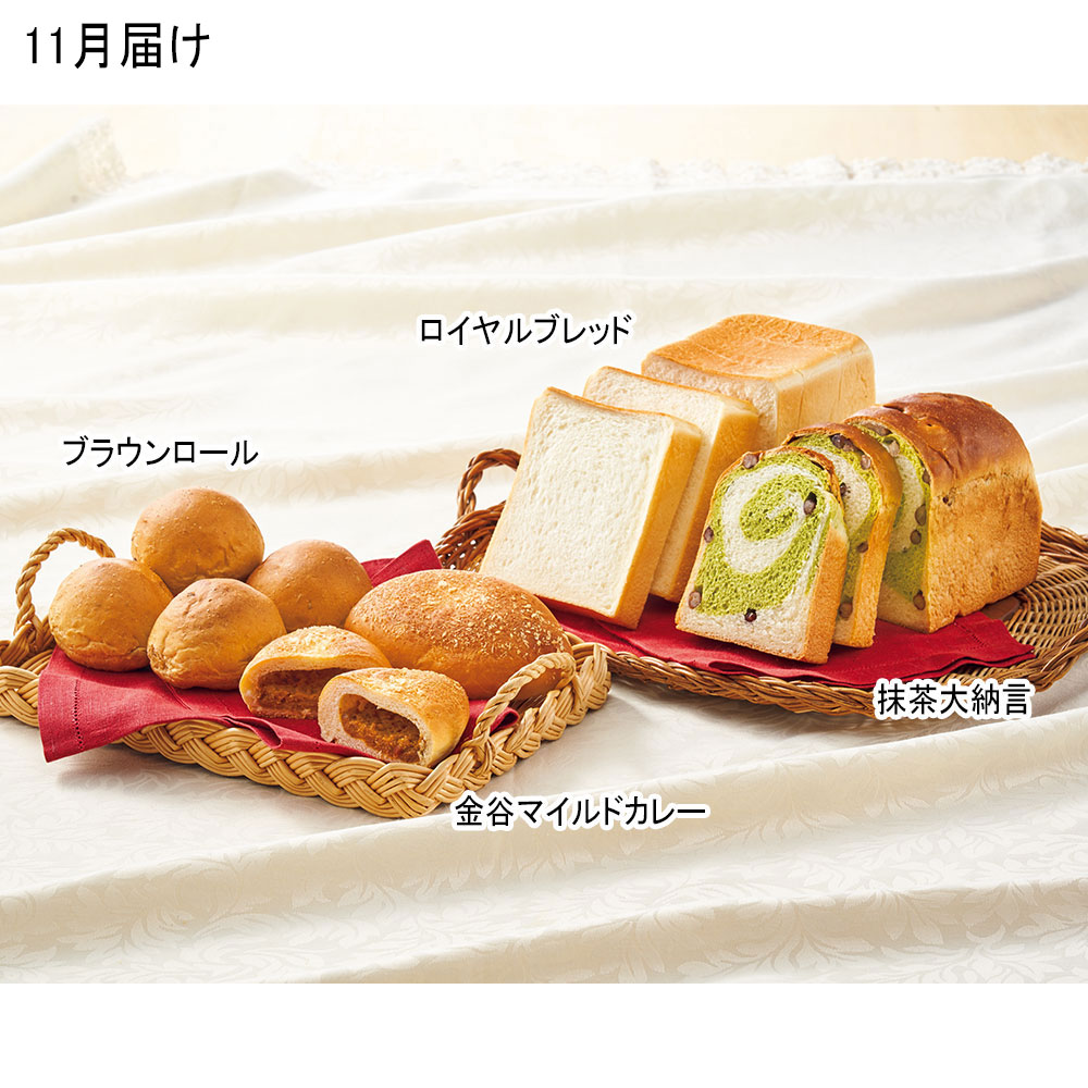 2026年11月:ロイヤルブレッド(630g×1個)、抹茶大納言(480g×1個)、金谷マイルドカレー(83g×2個)、ブラウンロール(30g×4個)