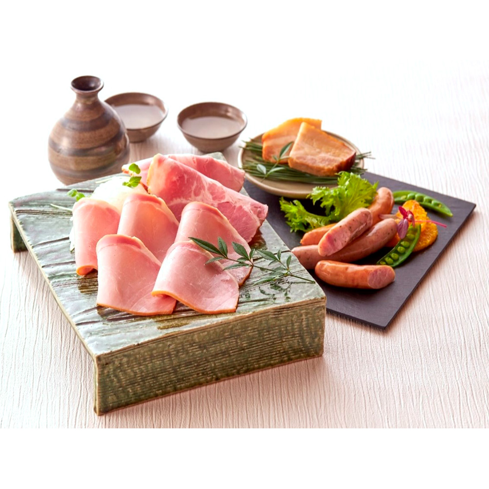 ロースハム250g×1、カタロースハム80g×1、焼豚250g×1、ポークソーセージ150g×1、ハーブソーセージ150g×1
