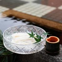 およそ180年の歴史のある大門素麺。日本髪の丸まげ状の麺が、生産者の名前入りの和紙に包まれています。雪国の厳しい寒さの中、ほとんどが手作業で作られる寒造りで、何度もよりをかけじっくり熟成させる技は、コシが強くなめらかな喉越しが特徴です。伸びにくいので、冷たくしても温かいにゅう麺にしても美味しくお召し上がりいただけます。最盛期には60人以上いた生産者が、現在は一桁となり、今や希少な手延べ麺になりました。