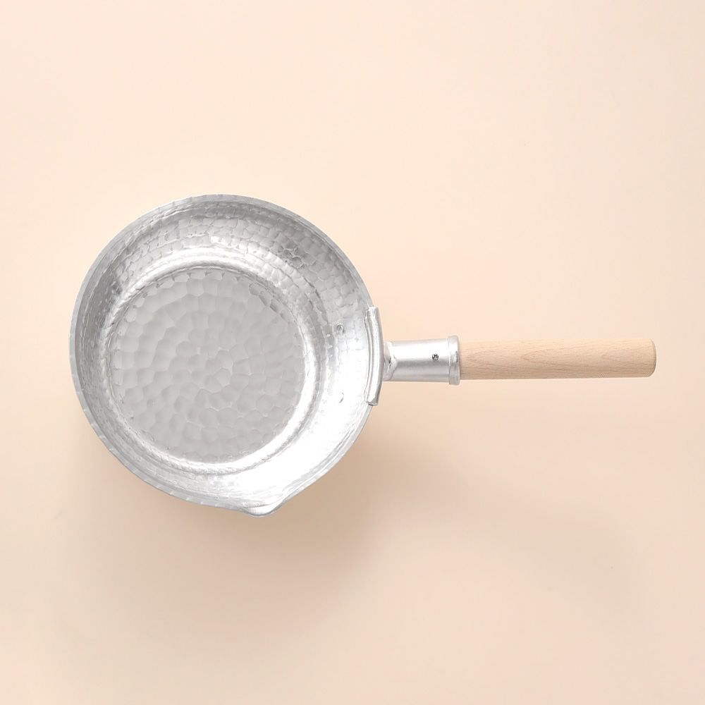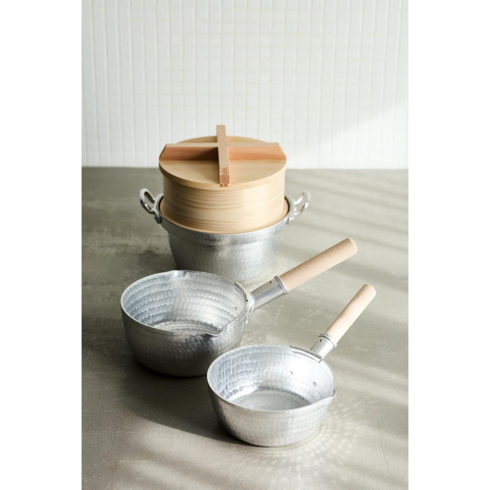 大正13年から続く大阪の手打ち鍋工房、<姫野作.>3代目の姫野寿一氏が丹精込めて製作した行平鍋。<姫野作.>の行平鍋は、整然と並んだ美しい槌目に、手打ちの技巧が宿る一流の料理人も愛用する名品です。高島屋限定品として、注ぎ口の角度をやや下向きに作成いただき、口の位置を下げることで、汁物の移し替えが楽にできます。少しコンパクトな17.5cmの片口は、少人数の食事作りにも活躍します。