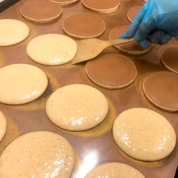 国産豆乳を配合した生地を、昔ながらの製法で焼き上げ、南伊豆「大島桜」の葉を用いた桜餡ともちもちの求肥をサンドいたしました。1つ1つの職人が焼き上げた香ばしいどら焼きは、お茶菓子にも最適で、甘さ控えめの味付けに仕上げております。昔ながらの配合・製法を忠実に継承し、どっしりとした重みのある皮をお楽しみいただけます。※消費期限が短い商品となります。必ずご在宅日時をご確認のうえご注文ください※水曜日・日曜日は工場休業日のため、出荷ができかねます。そのため、月曜日・木曜日のお届けをご指定の場合は消費期限が短くなってしまう可能性がございます。あらかじめご了承ください。