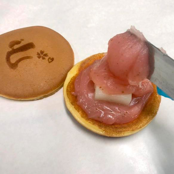 豆乳を加えたふわふわの皮ともちもちも求肥の食感がたまらない、春を感じるどら焼き。