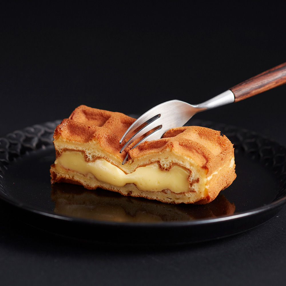 しっとりふわふわに焼きあげたワッフル生地でフルーツやクリームをサンドした<エール・エル>の人気商品