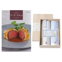 カタログギフト「ア・ラ・グルメ」は美味しいものを選べるグルメカタログ。豊富な品揃えで世代を問わず喜ばれています。セットのタオルは確かな品質の今治タオル。柔らかな手触りが魅力のフェイスタオル2枚のセットです。