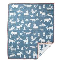 スウェーデンの森でおなじみの動物たちが大集合。お散歩バッグにもくるくるっと丸めて入れられるライトコットンブランケット。