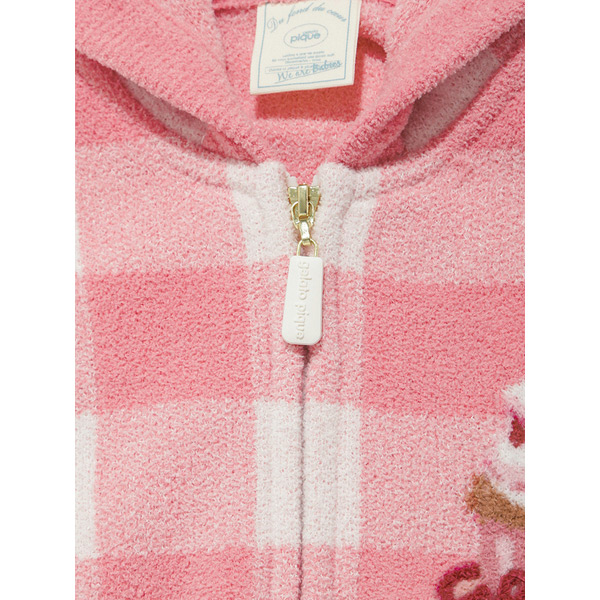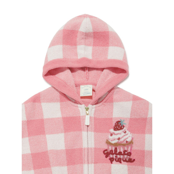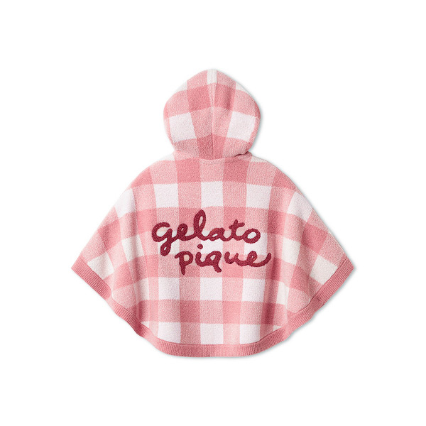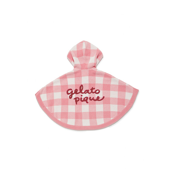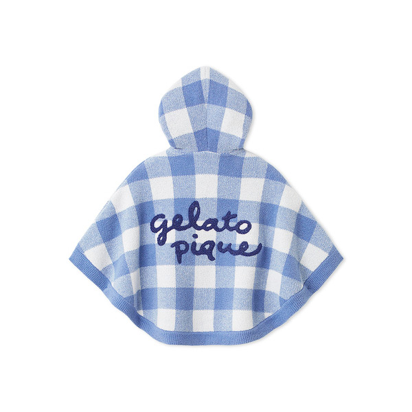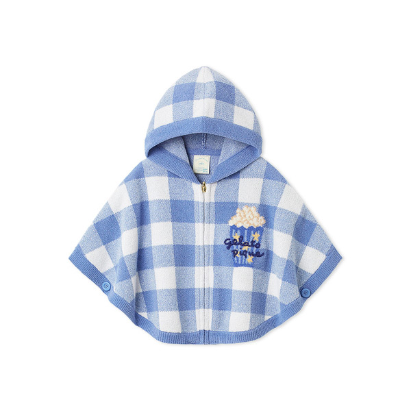 [Fabric]AIRY MOCO(エアリーモコ)・・・空気を身にまとっているような軽い着心地と、ライトな肌触りが魅力の「エアリーモコ」、通称エアリーモコ。ふかふかに焼き上げたスポンジのような風合いと、さらりとしたタッチで、ジェラート ピケのニットシリーズでは最も軽量。季節を問わず、爽やかな着心地がお好みの方にオススメです。[Design/Styling]明るくHAPPYなカラーリングに、カップケーキやポップコーンのモチーフをデザインしたファミリーで楽しめるニットシリーズです。ギンガムチェックを用いた「エアリーモコ」素材のBABYポンチョ。色は2色展開で、ピンクはカップケーキ、ブルーはポップコーンのジャガードを入れました。肌寒いときにもしっかり閉められるファスナー式で、背面にはさがら刺しゅうの大きなロゴ入り。ふんわり軽やかなニットが、親子で過ごすおうち時間を優しく演出します。同シリーズのカットソーや雑貨を合わせるのもおすすめ。KIDSとのリンク・コーディネートもお楽しみください。