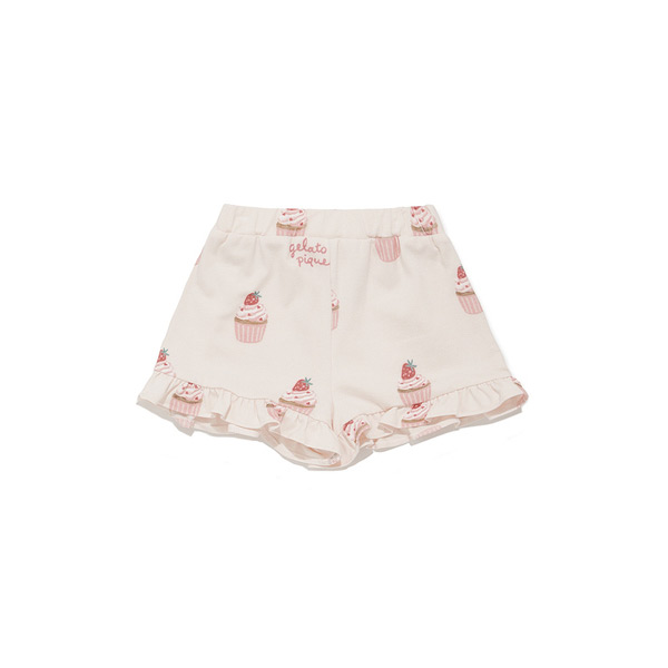 夏まで楽しめるカップケーキ柄のBABYフリルショートパンツ