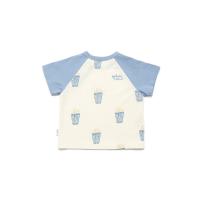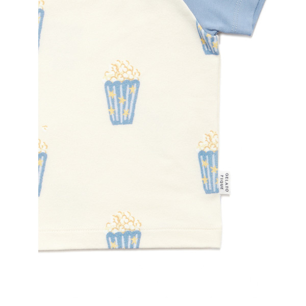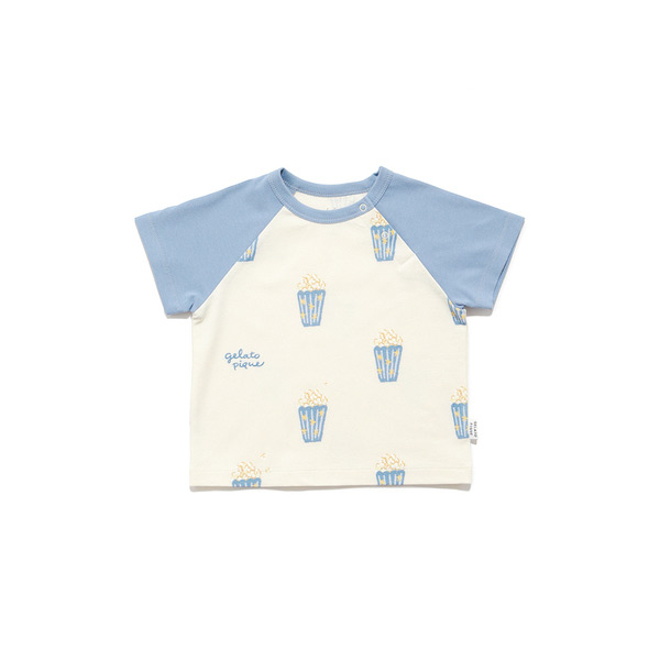 [Fabric]コットン、レーヨン混の肌触りの良いカットソーを使用しました。[Design/Styling]弾けるポップコーン柄がHAPPYなおうち時間を彩る、ファミリーで楽しめるカットソーシリーズです。ポップコーンとブランドロゴの総柄プリントを施した、配色ラグラン袖のBABYサイズTシャツ。肩にスナップボタン付きで着脱しやすく仕上げました。ブルーを効かせた爽やかな色合いと、肌触りの良い生地で夏も着用していただけます。同シリーズのハーフパンツやギンガムチェック柄のポンチョとコーディネートしたり、雑貨と組み合わせてギフトにもおすすめ。KIDSアイテムとのリンク・コーディネートもお楽しみいただけます。