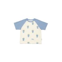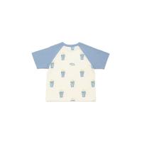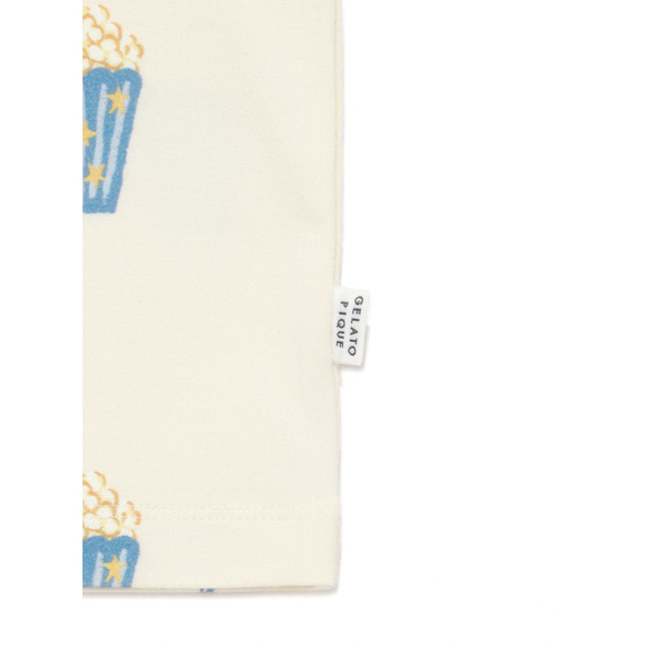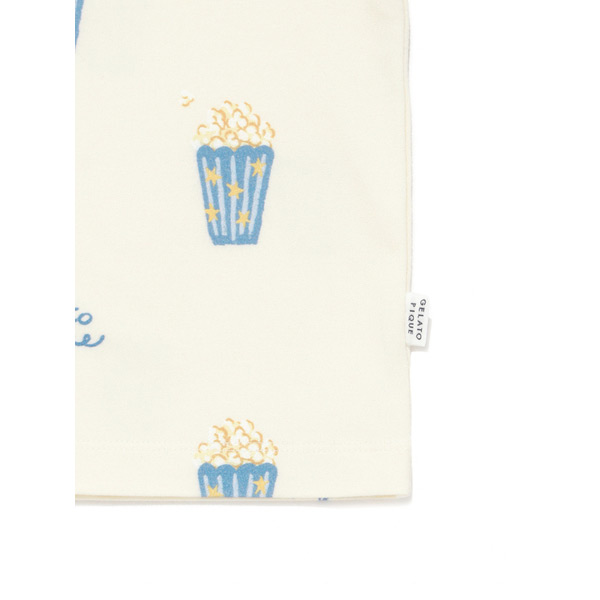 [Fabric]コットン、レーヨン混の肌触りの良いカットソーを使用しました。[Design/Styling]弾けるポップコーン柄がHAPPYなおうち時間を彩る、ファミリーで楽しめるカットソーシリーズです。ポップコーンとブランドロゴの総柄プリントを施した、配色ラグラン袖のKIDSサイズTシャツ。ブルーを効かせた爽やかな色合いと、肌触りの良い生地で夏も着用していただけます。同シリーズのハーフパンツやギンガムチェック柄のパーカとコーディネートしたり、雑貨と組み合わせてギフトにもおすすめ。BABYアイテムとのリンク・コーディネートもお楽しみいただけます。