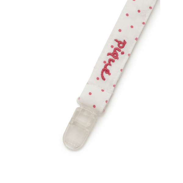 [Fabric]AIRY MOCO(エアリーモコ)・・・空気を身にまとっているような軽い着心地と、ライトな肌触りが魅力の「エアリーモコ」、通称エアリーモコ。ふかふかに焼き上げたスポンジのような風合いと、さらりとしたタッチで、ジェラート ピケのニットシリーズでは最も軽量。季節を問わず、爽やかな着心地がお好みの方にオススメです。[Design/Styling]可愛いいちごをモチーフにした、ふんわり軽い「エアリーモコ」素材のBABY雑貨シリーズ。緑のヘタやつぶつぶまで表現した大粒のいちごをあしらった、お出かけに便利なマルチクリップです。ハンカチを留めてスタイを作ったり、おもちゃの落下防止にしたりと、使い道は様々。ストラップ部分は可愛いドット柄プリントを入れ、ワンポイントでpiqueのロゴ刺しゅうも添えました。同シーズンのストロベリー柄のルームウェアや雑貨と組み合わせたり、出産祝いのギフトにもおすすめです。