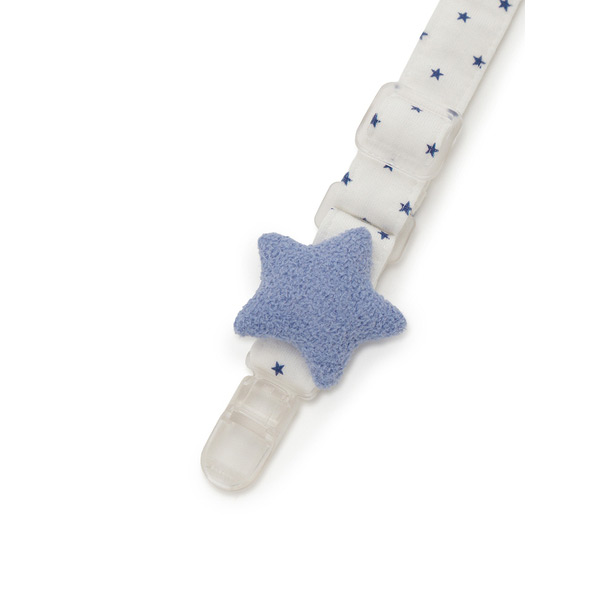 [Fabric]AIRY MOCO(エアリーモコ)・・・空気を身にまとっているような軽い着心地と、ライトな肌触りが魅力の「エアリーモコ」、通称エアリーモコ。ふかふかに焼き上げたスポンジのような風合いと、さらりとしたタッチで、ジェラート ピケのニットシリーズでは最も軽量。季節を問わず、爽やかな着心地がお好みの方にオススメです。[Design/Styling]爽やかな青いお星様をモチーフにした、ふんわり軽い’エアリーモコ’素材のBABY雑貨シリーズ。大きくてふわふわな星モチーフをワンポイントであしらった、お出かけに便利なマルチクリップです。ハンカチを留めてスタイを作ったり、おもちゃの落下防止にしたりと、使い道は様々。ストラップ部分はキャッチーなスター柄プリントを入れ、ワンポイントでpiqueのロゴ刺しゅうも添えました。同時期のポップコーン柄のルームウェアや雑貨と組み合わせたり、出産祝いのギフトにもおすすめです。
