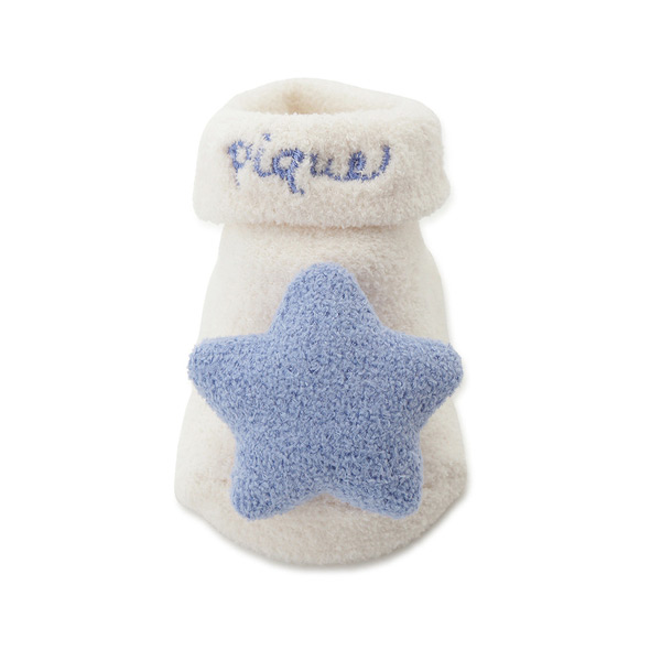 [Fabric]AIRY MOCO(エアリーモコ)・・・空気を身にまとっているような軽い着心地と、ライトな肌触りが魅力の「エアリーモコ」、通称エアリーモコ。ふかふかに焼き上げたスポンジのような風合いと、さらりとしたタッチで、ジェラート ピケのニットシリーズでは最も軽量。季節を問わず、爽やかな着心地がお好みの方にオススメです。[Design/Styling]爽やかな青いお星様をモチーフにした、ふんわり軽い’エアリーモコ’素材のBABY雑貨シリーズ。ふわふわの立体的なお星様をあしらった、インパクトも抜群のBABYソックスです。ワンポイントでpiqueのロゴ刺しゅうも添えました。同時期のポップコーン柄のルームウェアや雑貨と組み合わせたり、出産祝いのギフトにもおすすめです。