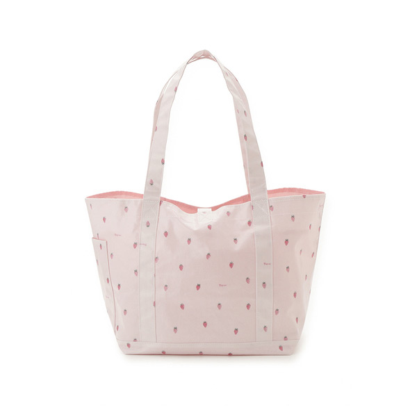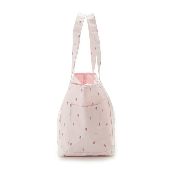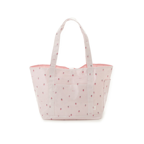 [Fabric]表地はコーティングしたコットン生地を使用。裏地には優れた抗菌防臭機能をプラスし、菌による臭いの発生を抑えます。水や摩擦にも強く、耐久性に優れた素材です。[Design/Styling]可愛いフルーツ、小さなストロベリー柄を散りばめた、ミルキーなカラーリングのママ雑貨シリーズです。マチありで荷物がたっぷり入る、BABYとのお出かけに便利なトートバッグ。本体内側とサイドに、おもちゃやスマホなどを収納できる小さなポケットを付け、長めのハンドルで肩に掛けやすくしています。表地のコットンは水や摩擦に強い加工を施し、裏地は抗菌防臭機能が付いた生地を使用しました。同シリーズの母子手帳ケースと合わせてギフトにしたり、KIDS、BABYアイテムとのリンクコーディネートもお楽しみいただけます。