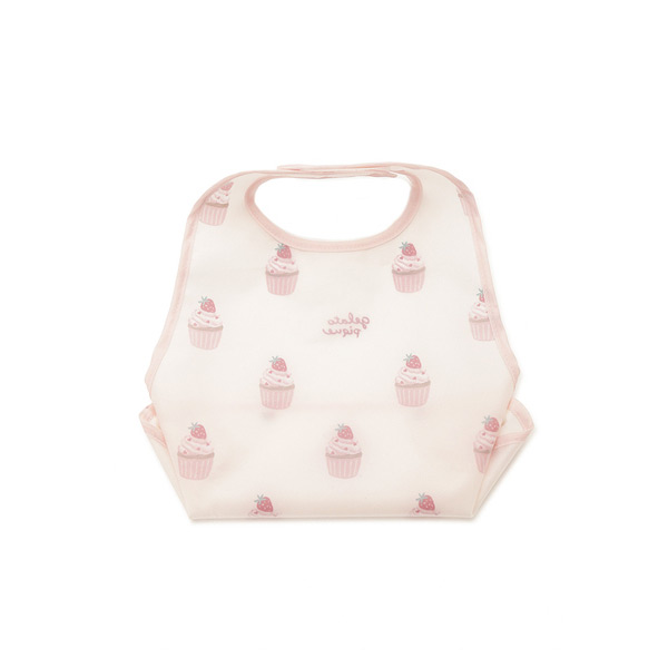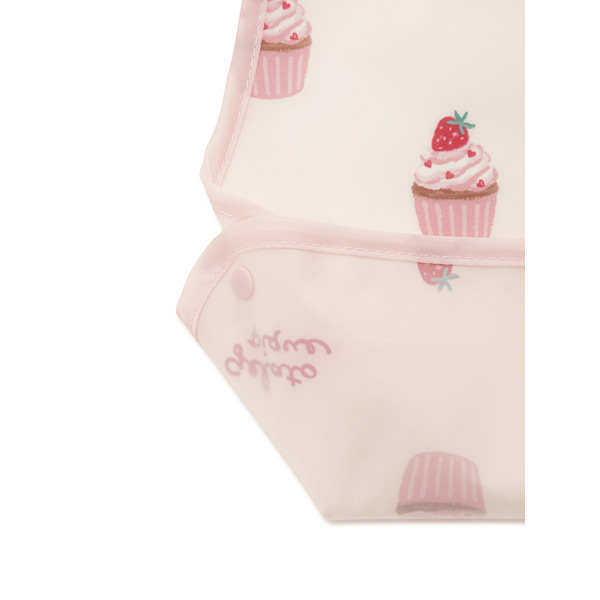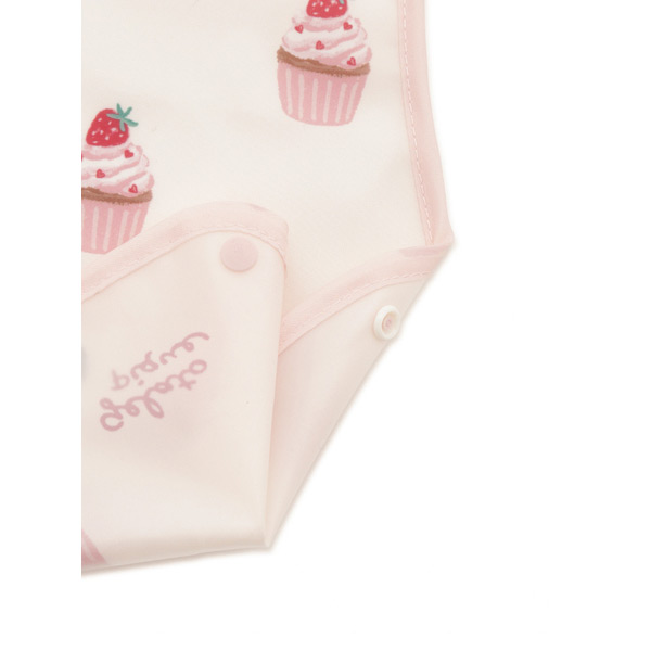 [Design/Styling]いちごとハートを乗せたキュートなカップケーキ柄のお食事スタイです。食べ物で汚れてもさっと拭き取れる素材。スナップボタンを外せばフラットになるので、折り畳んで手軽に持ち運びが可能です。色はいちごミルクのような可愛いピンク。同シリーズのルームウェアとコーディネートしたり、ギフトにもおすすめです。
