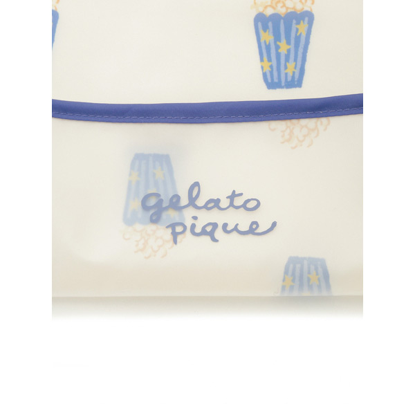 [Design/Styling]ブルーのパイピングを効かせた、弾けるポップコーン柄のお食事スタイ。汚れてもさっと拭き取れる素材で、スナップボタンを外せばフラットに折り畳んでバッグ等に収納していただけます。爽やかな色合いはこれからの季節にもぴったり。同シリーズのルームウェアとコーディネートしたり、ギフトにもおすすめです。