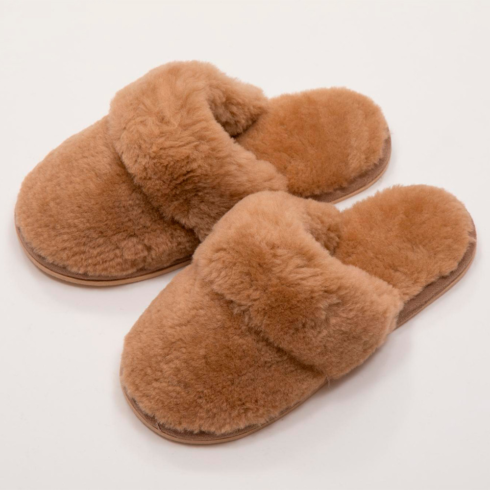 ボリュームのある天然羊毛を使用したムートンスリッパ