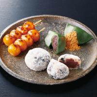 赤えんどう豆入り豆大福、よもぎが香る生地とやさしい甘さが特長の草餅、国産丸大豆醤油をたれに使ったみたらし団子の3種セット。