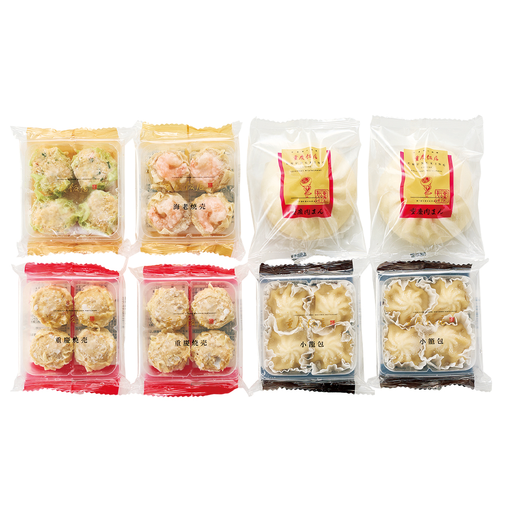 重慶焼売・小籠包各4個×2袋、肉まん120g×2袋、海老焼売・野菜焼売各4個×1袋、5種計26個