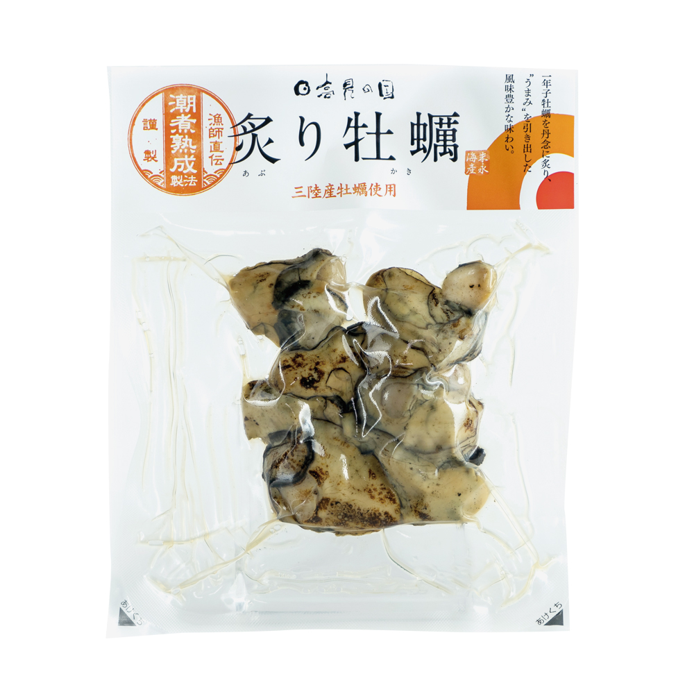 生牡蠣を漁師直伝の潮ゆで製法で煮込み、丹念に炙りました。旬の「さくら牡蠣」の旨味を閉じ込めた香ばしいおいしさです。