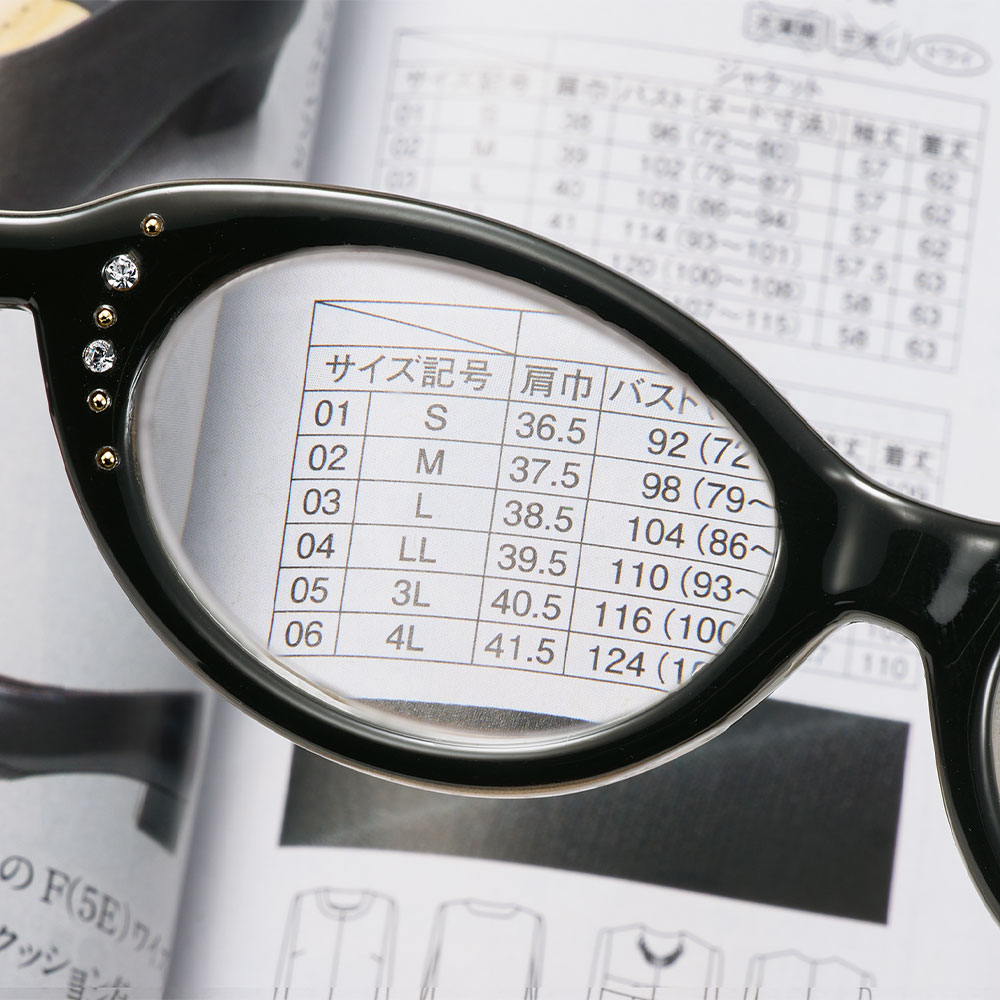 細かい文字が見える拡大鏡付き。