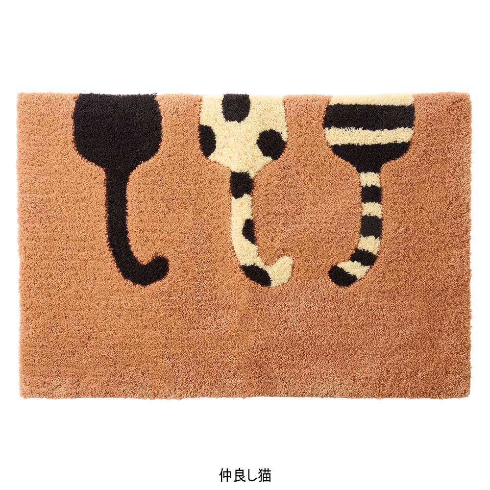 大人気のぱっちりおめめの「MEME」と、可愛らしい3匹の猫の垂れたしっぽがデザインされた「仲良し猫」のインテリアマット。ぎゅっと詰まった高密度フックマットならではの心地よいしっかりした踏み心地が魅力です。