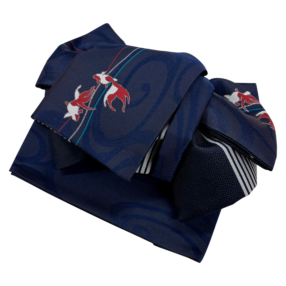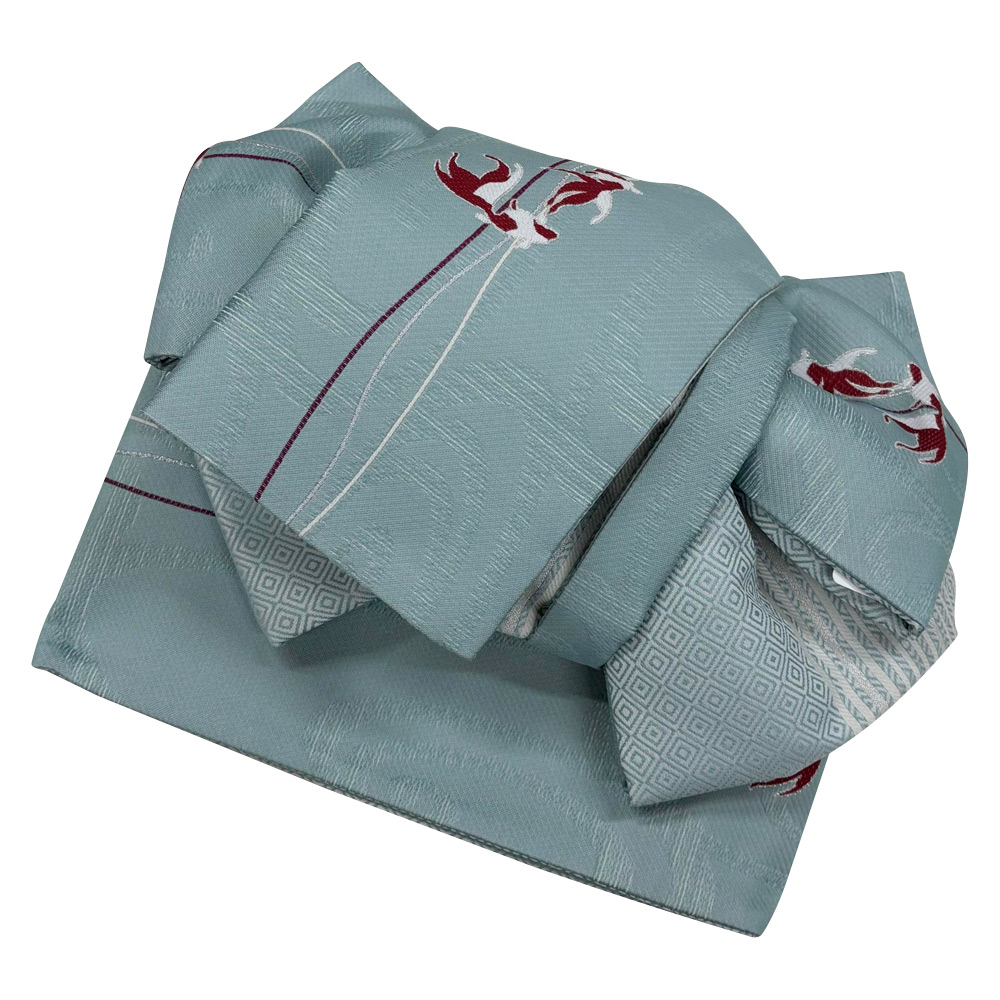 胴体に紐で巻き付ける帯部分と、文庫結びのリボン飾り部分の二部式の作り帯です。リボンの飾り部分は背中に金具で挿し込んだ上、紐で結び留めるタイプです。ゆかたの着用や帯の結びに不慣れな方でも、結ぶ手間をかけずに綺麗な着姿に仕上がり、着崩れしにくく大変便利です。