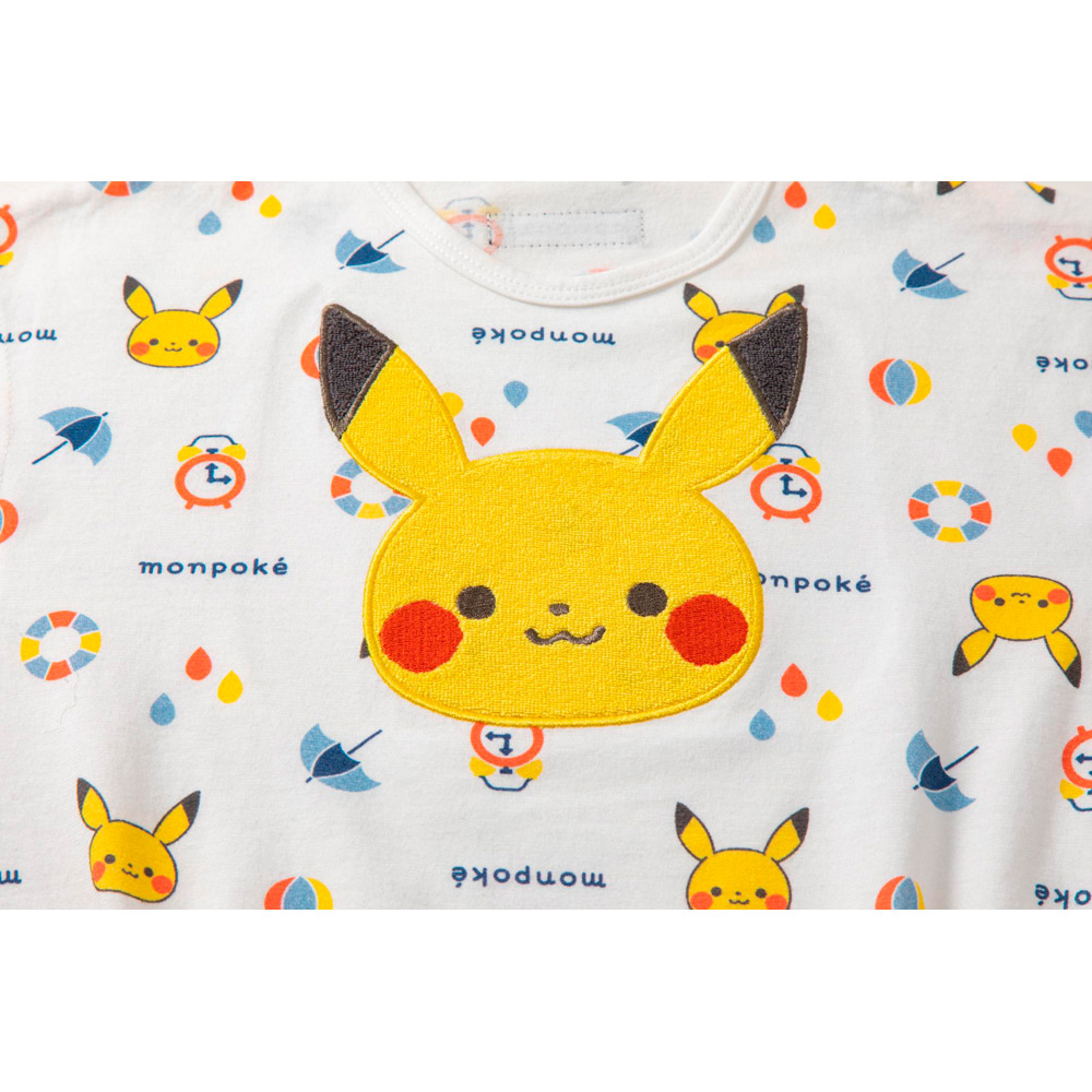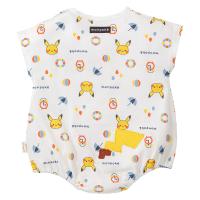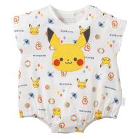 ピカチュウの顔のアップリケ刺しゅうが入った半袖ロンパース