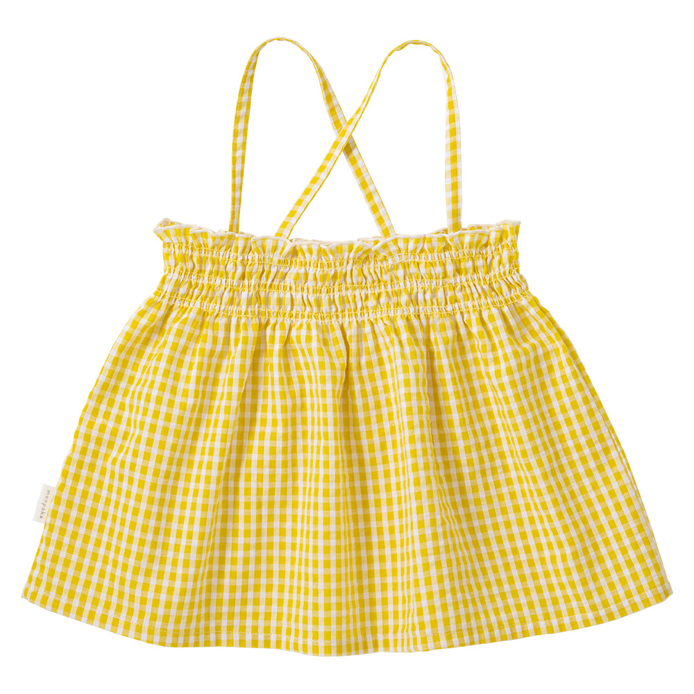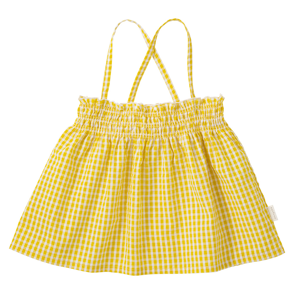 ギンガムチェック生地のキャミソールワンピースとネップ天竺の半袖ロンパースのセット