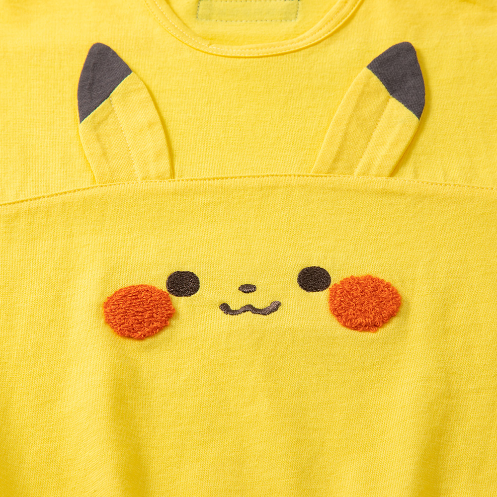 背中にはしっぽの刺しゅうも入っていて、後姿もピカチュウです。肩開き仕様でお着替えもらくちん。