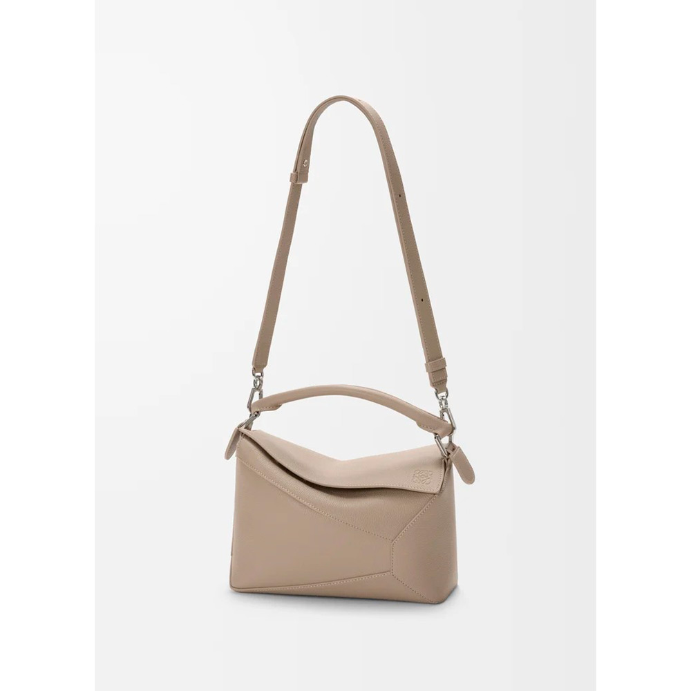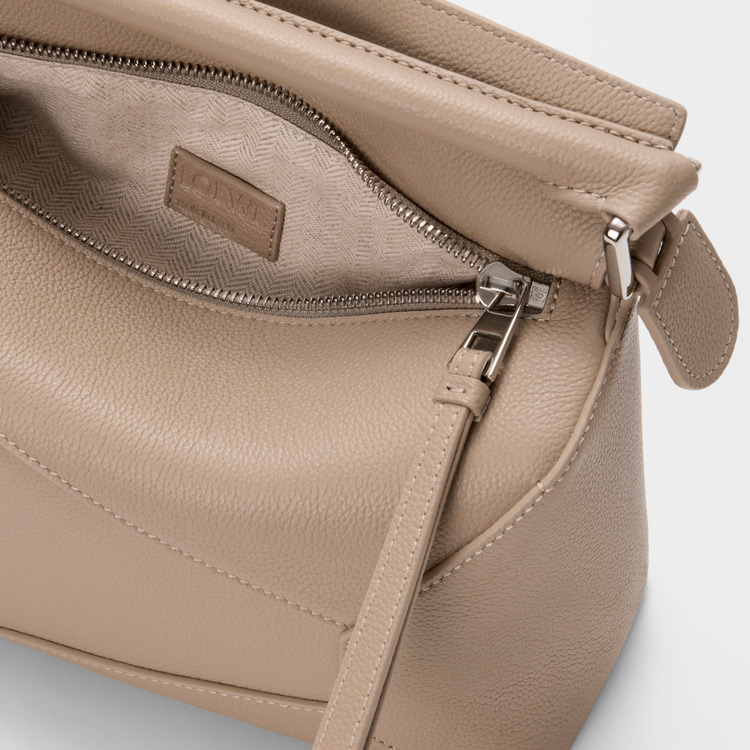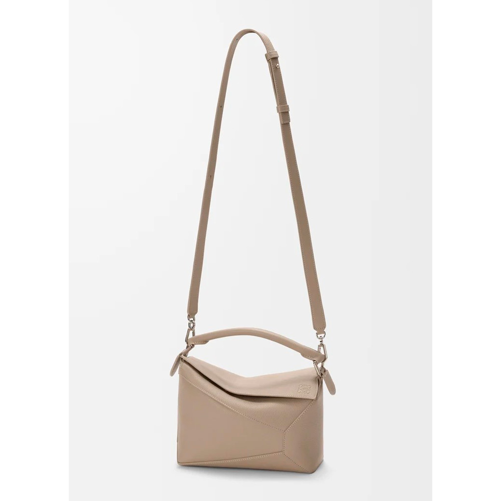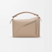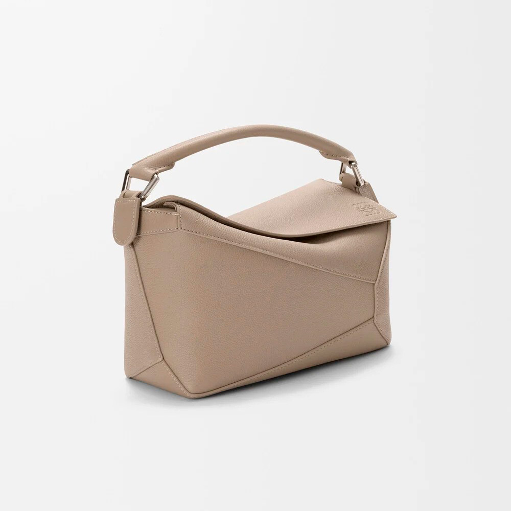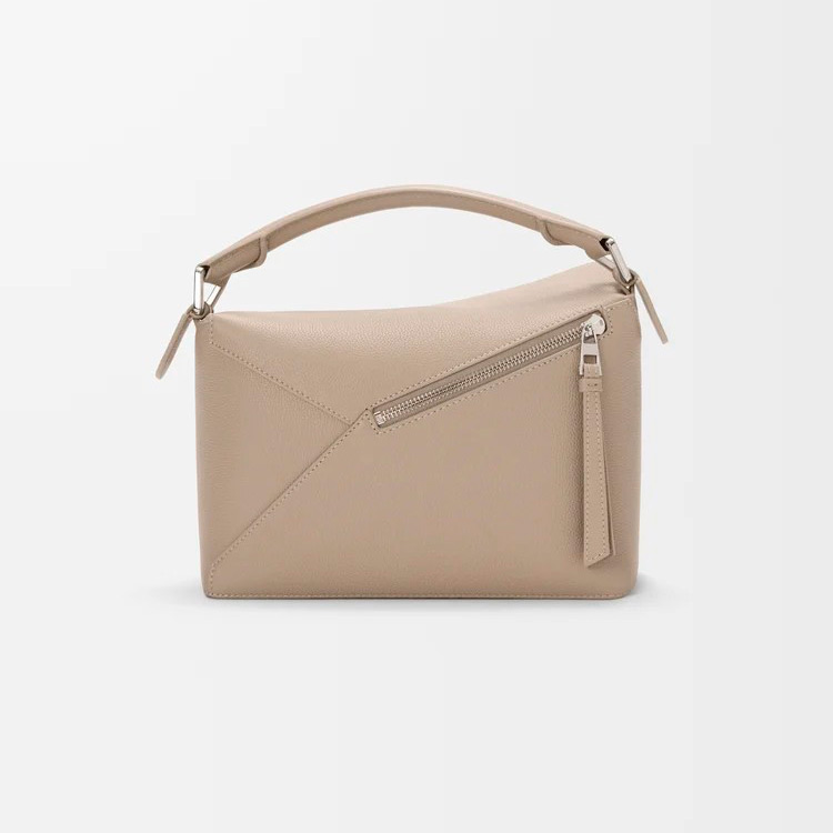 独特の幾何学的なデザインと四方体のフォルムが特徴のパズルエッジ。クラシックな構造とは異なり、シングルステッチのラインが入ったレザーピースを重ね合わせています。本製品はソフトグレインカーフスキンをした採用したスモールサイズです。