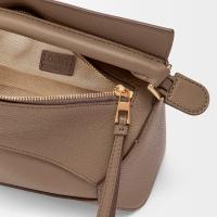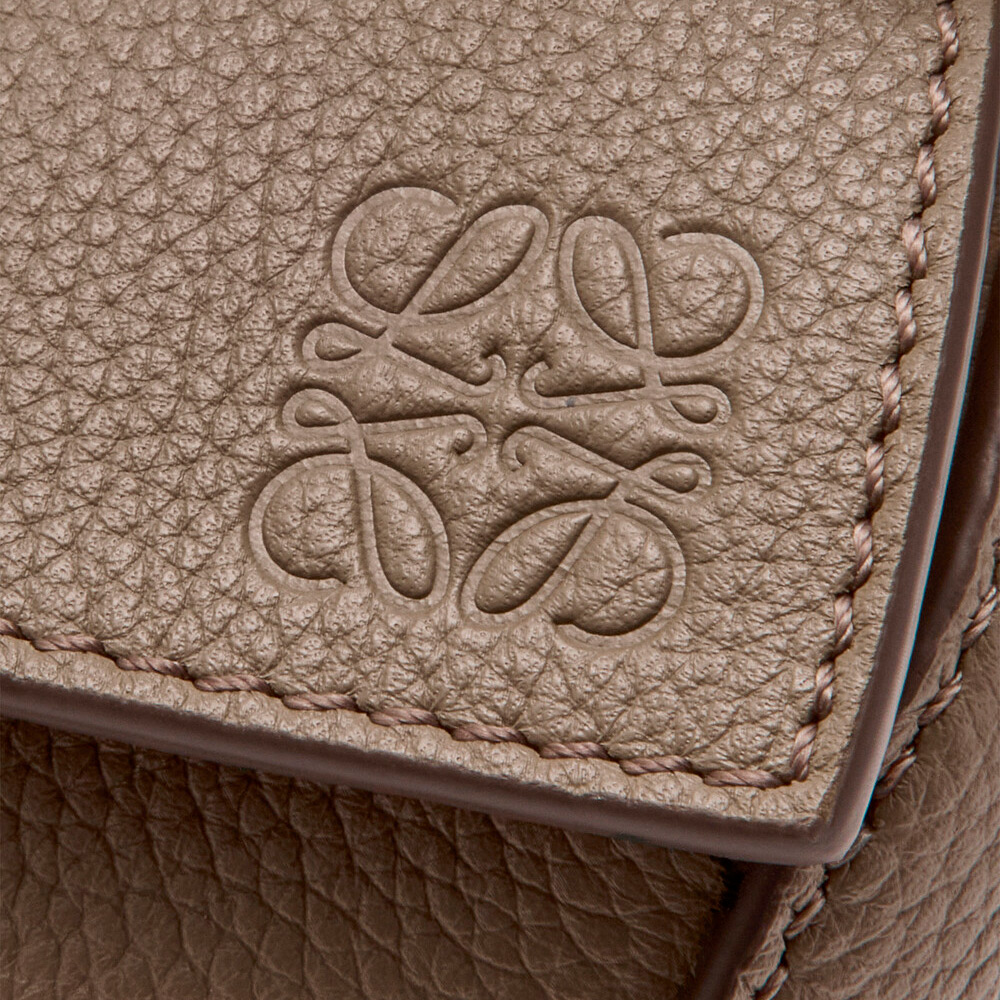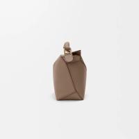 独特の幾何学的なデザインと四方体のフォルムが特徴のパズルエッジ。クラシックな構造とは異なり、シングルステッチのラインが入ったレザーピースを重ね合わせています。本製品はソフトグレインカーフスキンを採用したミニサイズです。