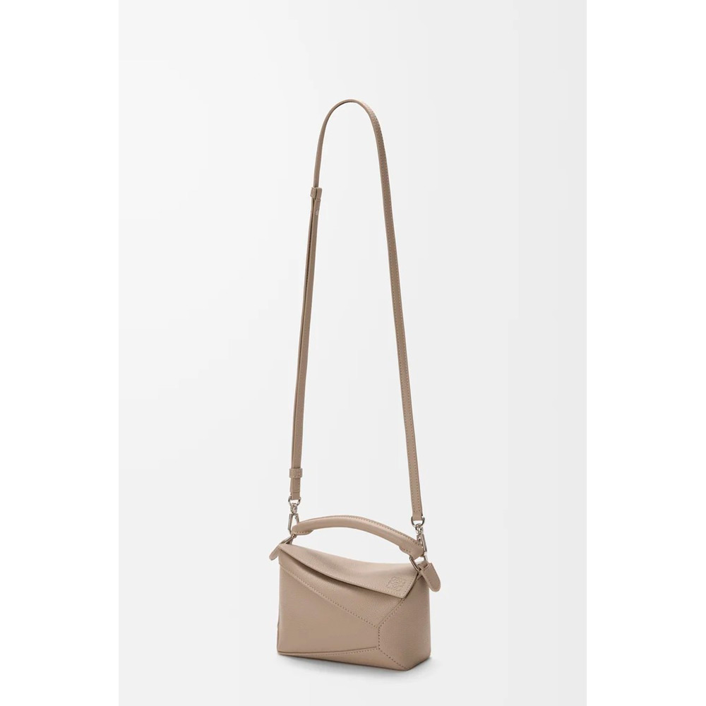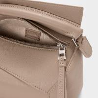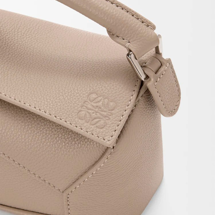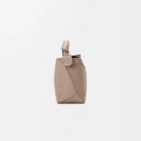 独特の幾何学的なデザインと四方体のフォルムが特徴のパズルエッジ。クラシックな構造とは異なり、シングルステッチのラインが入ったレザーピースを重ね合わせています。本製品はソフトグレインカーフスキンを採用したミニサイズです。