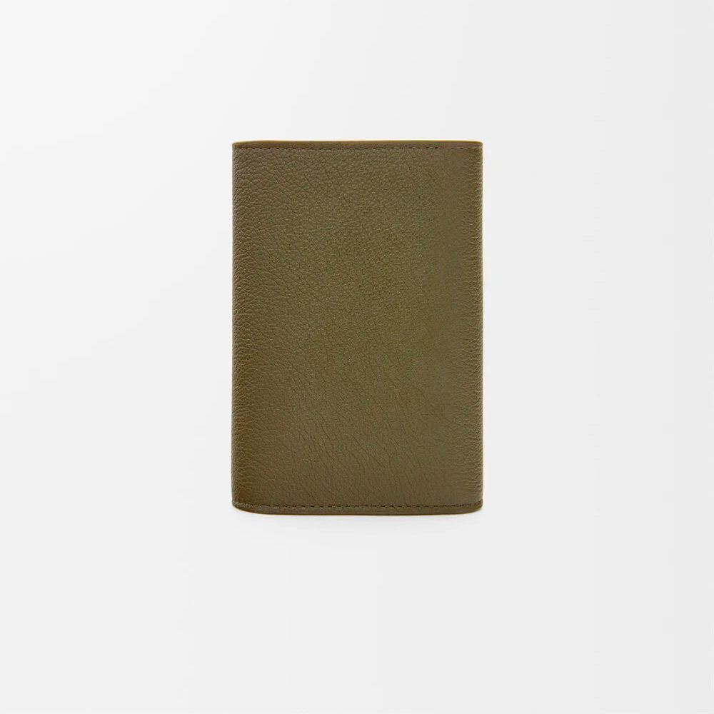 ペブルグレインカーフスキンを採用したスモールサイズのバーティカルウォレット。シグネチャーのアナグラムぺブルのクロージャーがあしらわれています。