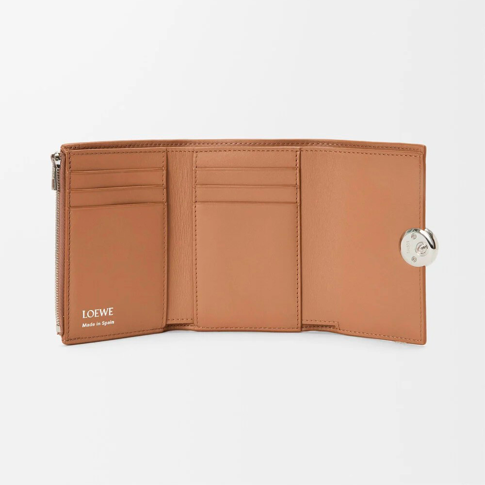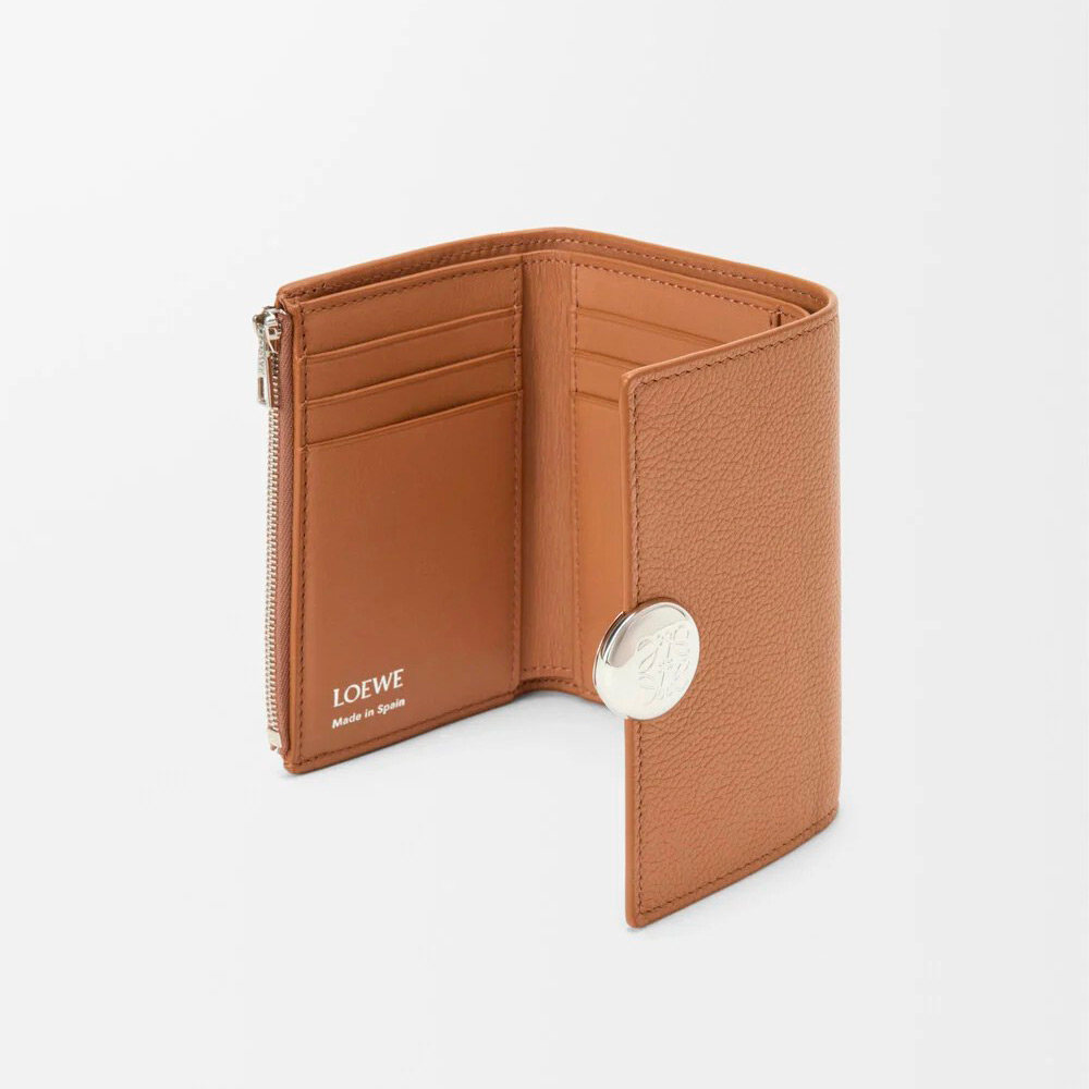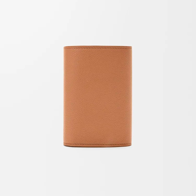 ペブルグレインカーフスキンを採用したスモールサイズのバーティカルウォレット。シグネチャーのアナグラムぺブルのクロージャーがあしらわれています。