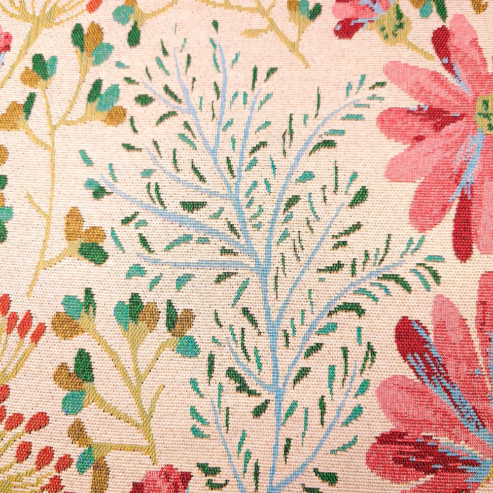 生地のしっかりしたジャガード織りのダイニングシート2点セットです。立体感のある織模様で華やかな柄とかわいらしい花の色がお部屋を明るくします。中身をはずして手洗いできます。