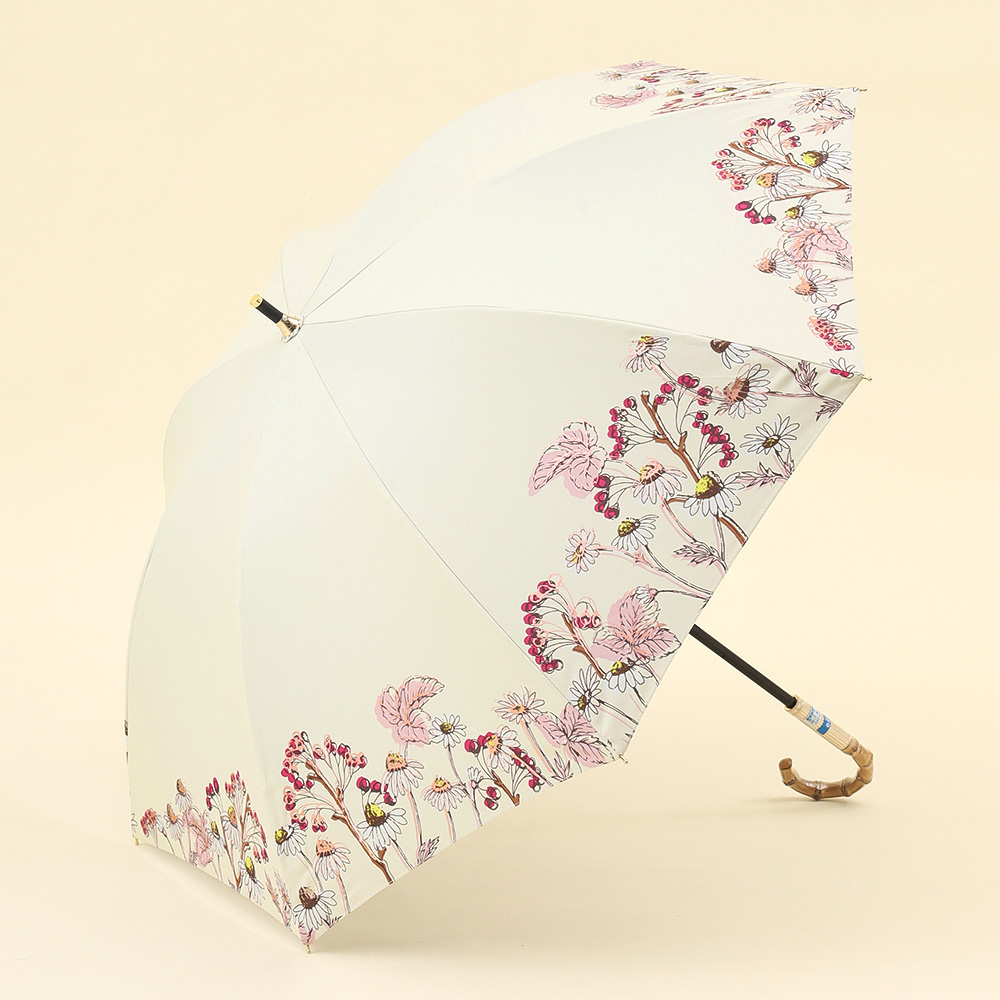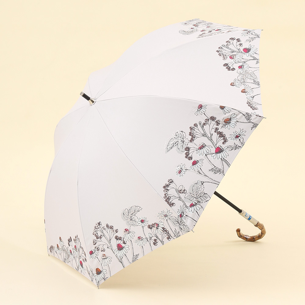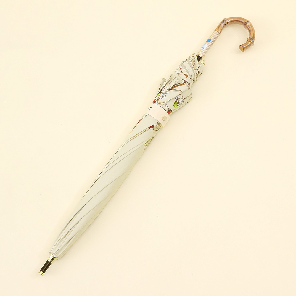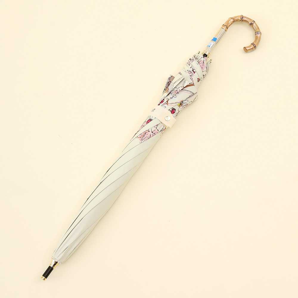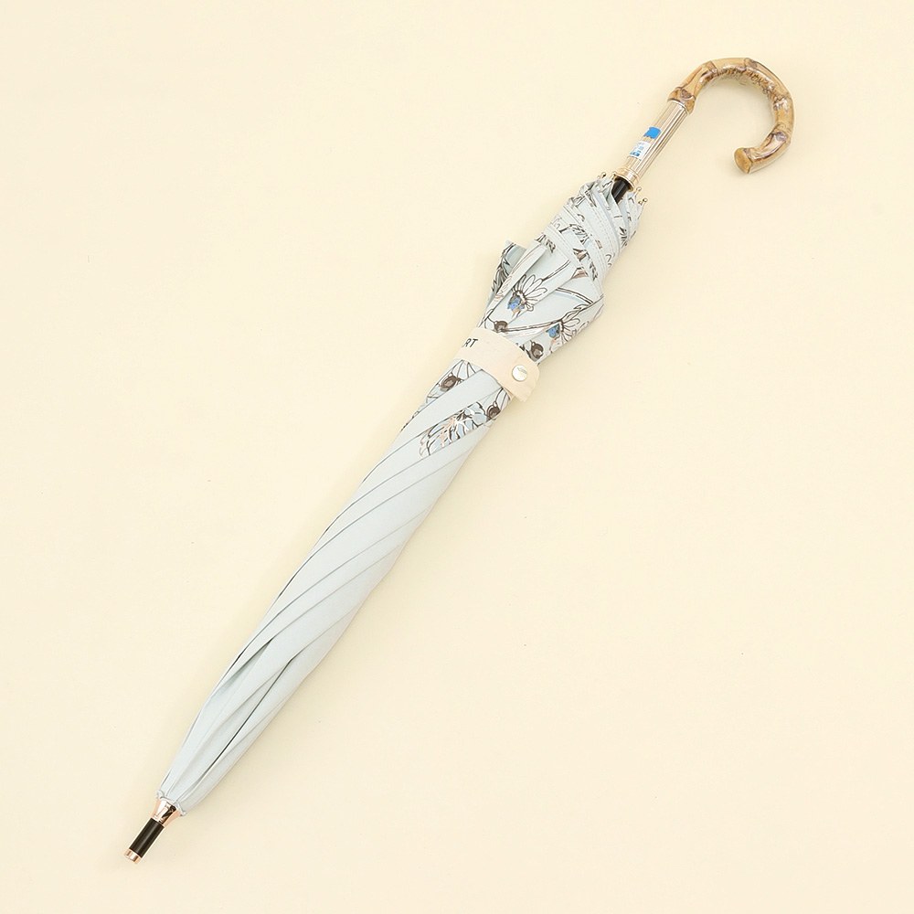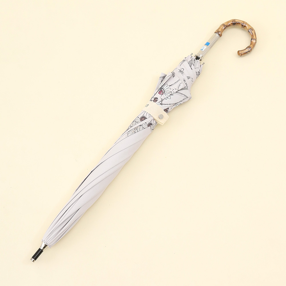 クールでかっこいいムードとナチュラルな可愛さのバランスが魅力です。さりげなくきらめく箔プリントがアクセントになり、光の角度での表情がかわるのも楽しみのひとつです。フェミニンでありながら、あくまでモード、他にはないJILL STUARTのスタイルです。ヴィンテージ風のバンブー持ち手が、全体の印象をぐっと格上げ。コーディネートに自然になじみながら、さりげなくセンスを感じさせる一本です。