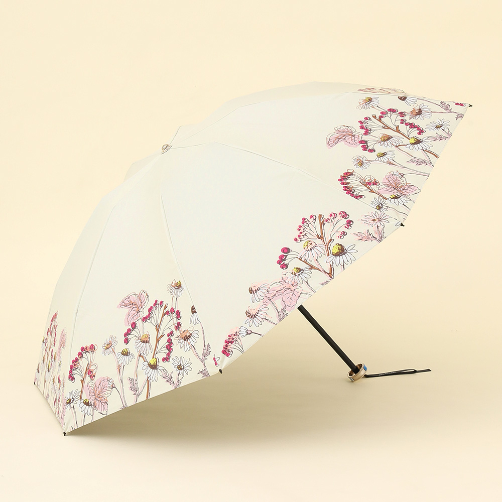 ボタニカルパターンをランダムにプリントした、印象的なデザインの折りたたみ傘