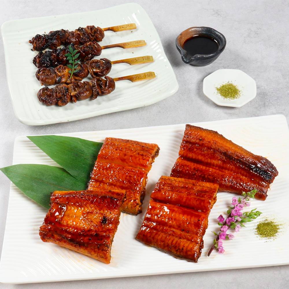 愛知の中でも有名な銘柄うなぎ産地である「西尾市一色地区」の養殖業者から、肉質・脂肪・におい・皮の硬度・大きさなど、鰻の状態を厳しくチェックし熟練の職人が目利きで選別し仕入れています。その水揚げされたばかりの活きが良く、柔らかく上質な身質の鰻を、職人が一尾ずつ丁寧に割き、蒸しと焼きの絶妙なバランスでおいしく焼き上げました、蒲焼は皮も身も柔らかいため、口に入れるとふわっとほどけるような食感です。そんなこだわりの詰まった使いやすく便利な食べきりサイズの「小分けうなぎ蒲焼」と三河一色産の活鰻を捌いたばかりの鮮度の良い肝を丁寧に下処理し、たれ漬けし苦みとクセのない美味しいうなぎ肝串焼きとのセットです。是非ご賞味くださいませ。