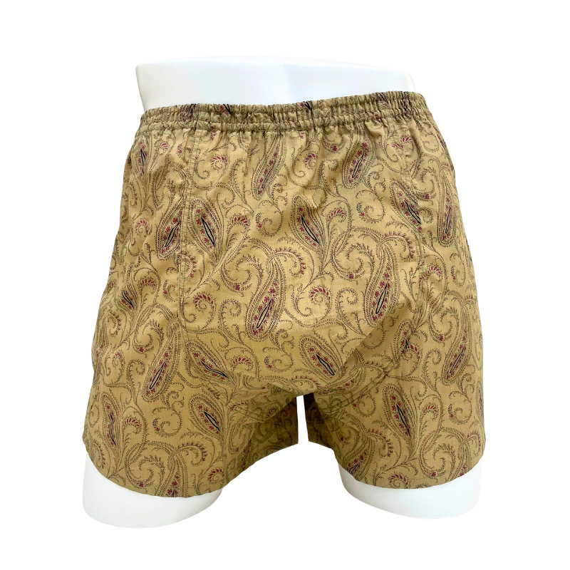 落ち着いたペイズリー柄のトランクス。ゆったりとしたシルエットで通気性がよく、軽やかな穿き心地を実現。デイリーに使いやすい上品なデザインで、幅広い年代におすすめの一枚です。高密度に織り上げたタイプライター素材。適度なハリとしなやかさがあります。